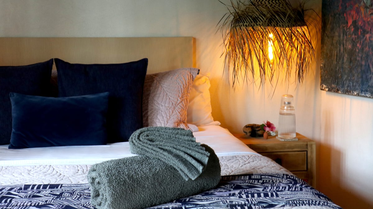 Private and tranquile, minutes to town and beach. Recently renovated. Shared dipping pool in garden in front of the unit. Perfect for one person or a couple! Shared outdoor / common areas on the property include dipping pool, gardens, hammocks, Yoga / recreational deck, pick nick table.