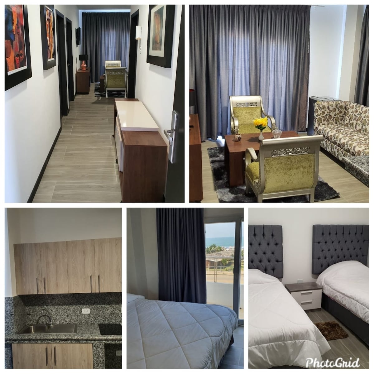 Departamento con una vista espectacular en unos de los pisos más altos n.º18 de la Torre Mediterránea del Ocean Beach Club Hotel & Resort, ubicado a solo 55 minutos de Guayaquil, y a 5 minutos del centro de General Villamil Playas, considerado (dato interesante: Playas posee el segundo mejor clima en el mundo declarado por la UNESCO) ideal para pasarlo bien en familia y amigos celebra cumpleaños, noche de bodas, aniversarios en un ambiente acogedor , magnético y genial