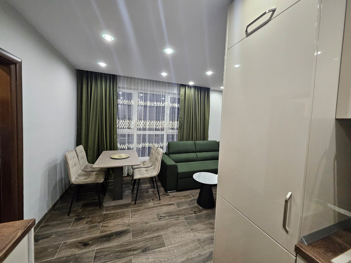 El departamento se encuentra en un edificio completamente nuevo. Tiene aire acondicionado y todo lo que necesitas para sentirte en casa, incluidos electrodomésticos de cocina, ropa de cama hermosa y toallas limpias. Como cumplido: ¡área de estacionamiento gratuito! El departamento está en un edificio nuevo, en un vecindario tranquilo. Está sintonizado y equipado con todo lo que necesitas para sentirte en casa, incluidos electrodomésticos de cocina, hermosas sábanas y toallas. Huéspedes de cortesía, ofrecemos estacionamiento gratuito.