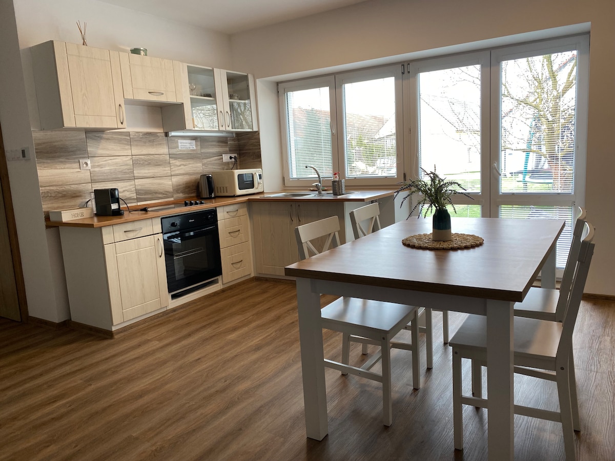 El apartamento está situado en el pintoresco pueblo de Milínov, a 15 km de Pilsen. Agradecerás la terraza privada y el jardín compartidos con el otro apartamento. Los propietarios son dueños de una granja, por lo que en temporada los huéspedes tienen la oportunidad de acariciar y alimentar a cabras, ovejas y ponis o mirar caballos y vacas. Pueden organizar el alquiler de un poni para niños pequeños o un paseo a caballo. Los alrededores son adecuados para practicar senderismo y ciclismo con posibilidad de excursiones al castillo de Kozel, Nebílovy o al castillo Radyni y Pilsen cercano ofrece Techmania, ZOOLÓGICO o cervecería Pilsen.