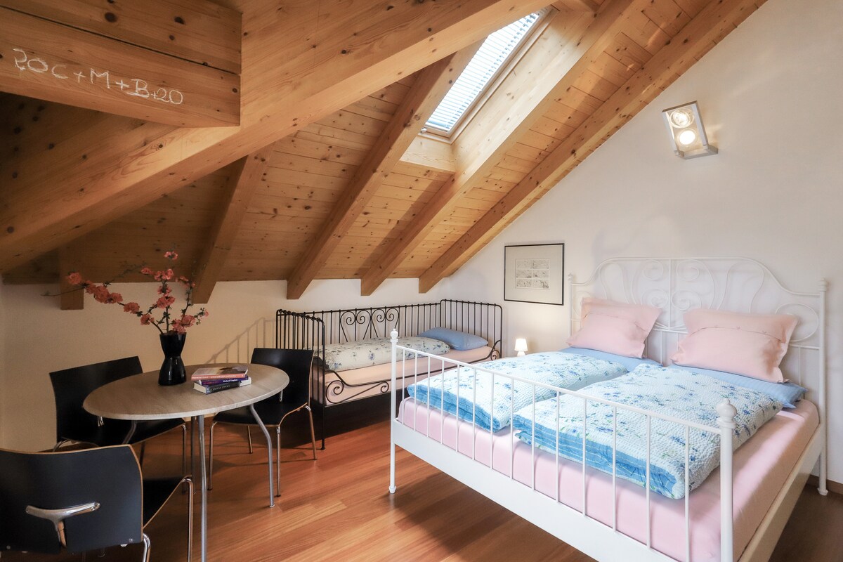Apartamento ático muy bonito y autónomo en una ubicación tranquila y céntrica, con una vista increíble sobre el valle del Adigio, enclavado en un encantador paisaje de viñedos, a 1 hora del lago de Garda y los Dolomitas. Se encuentra en un edificio de apartamentos muy tranquilo y tiene capacidad para 3 personas. Consta de un amplio dormitorio y sala de estar, un cómodo baño con ventana y una gran terraza. Garaje propio gratuito y espacioso con cerradura + plaza de aparcamiento exterior adicional. Ascensor desde el garaje.