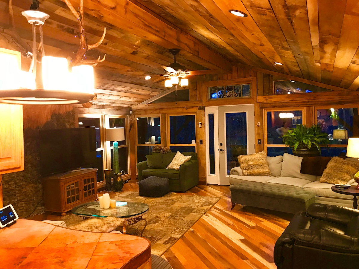 ¡Esta cabaña es un paraíso para los artistas! Escondido en lo alto de una montaña, luego en un valle privado en el campo de Apple, el "Cliffhanger" en el bosque es una verdadera joya. Verano nadando en su piscina al aire libre privada con una característica de piedra preciosa genuina y luces LED que cambian de noche, y jardín ajardinado con plantas y arte nativos. Hay una cámara Ring apuntando a la entrada por motivos de seguridad. Enorme envolvente alrededor del porche cubierto y gran terraza y piscina para disfrutar al aire libre.