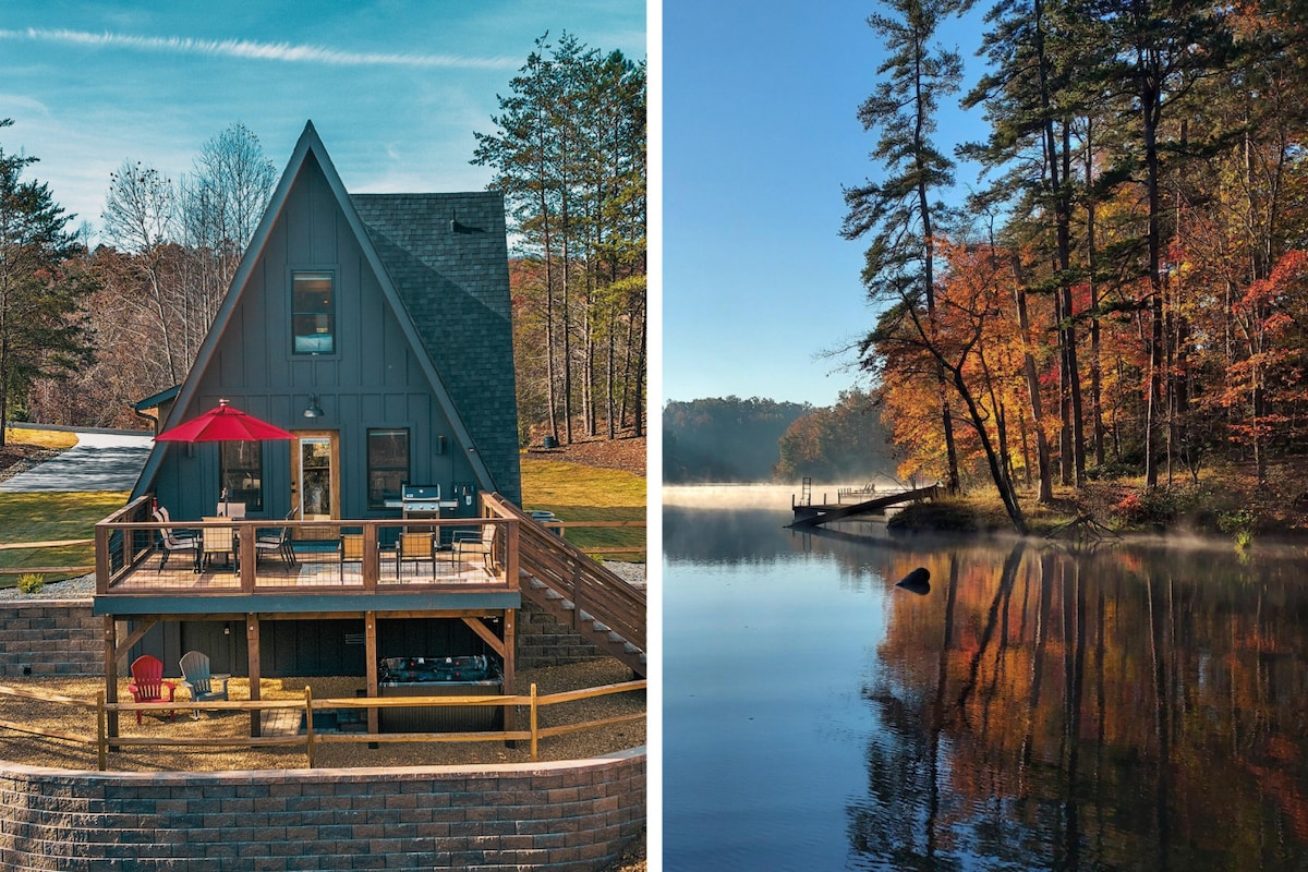 Acogedora casa sobre el agua con un follaje otoñal espectacular