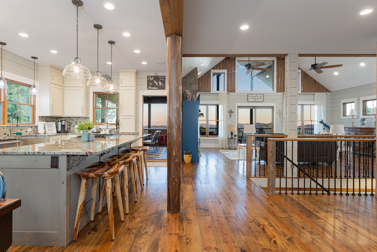 Encuentra consuelo en Duke's Hideaway, un acogedor refugio en la cima de una montaña. Nuestra hermosa casa de madera está finamente equipada con muebles rústicos y elegantes e incluye todo lo que necesitas para pasar unas vacaciones maravillosas. Cabaña de 2 dormitorios/2 baños + gran espacio en el altillo con vistas a las montañas del sur y orientada al este. Increíbles vistas a la montaña y al valle desde la enorme terraza y el patio. Vistas panorámicas de las montañas desde el espacio del altillo, sala de estar y comedores.