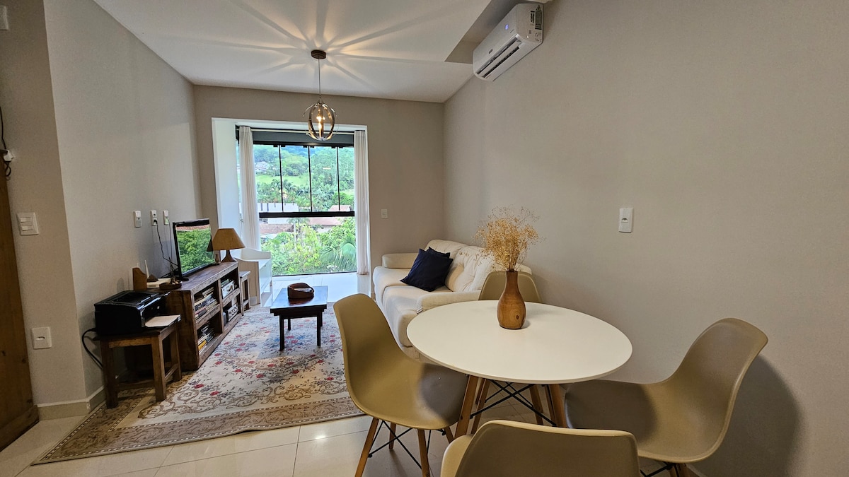 🎉 Alójate en el corazón de Pomerode, a solo 90 metros del Pomeranian Party Pavilion y a 450 metros del parque Alles. El apartamento ofrece el equilibrio ideal entre comodidad y tecnología: automatización con Alexa, cocina equipada, garaje cubierto, aire acondicionado y un ambiente acogedor. Disfruta de una estancia práctica y completa, perfecta para parejas y familias, con fácil acceso a las atracciones de la ciudad más alemana de Brasil. Disfruta de Pomerode con comodidad, practicidad y pago en hasta 6 cuotas sin intereses.