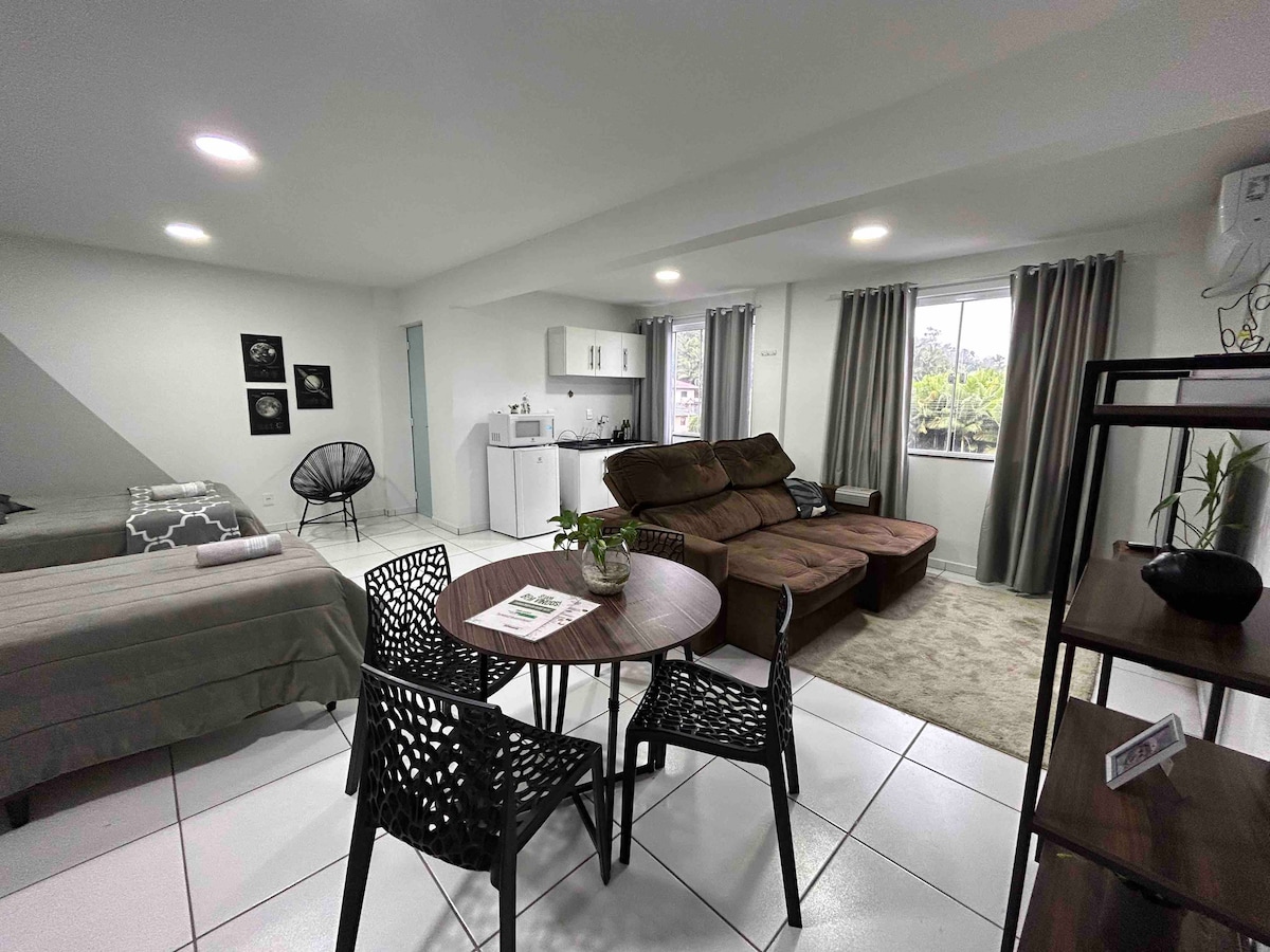 Loft perfecto para aquellos que buscan estar cerca de los principales lugares de interés, restaurantes y panaderías. - En el jardín del restaurante (180 metros) Dona Ella Bakaria (240 metros) - Zoológico (1km) - Museo del Automóvil (900 metros) - Alles Park (1,8 km) - Spitz Pomer (1,2 km) - Cervecería Schornstein (1,1 km) - Supermercado superior (900 metros) - Ruta de madera (3,4 km) - Pabellón de eventos (2,2 km) Centro Cultural (1km) - Paseo de Pomerania (1 km) - Confeitaria Torten (1,1 km) - Centro Blumenau (30 km)