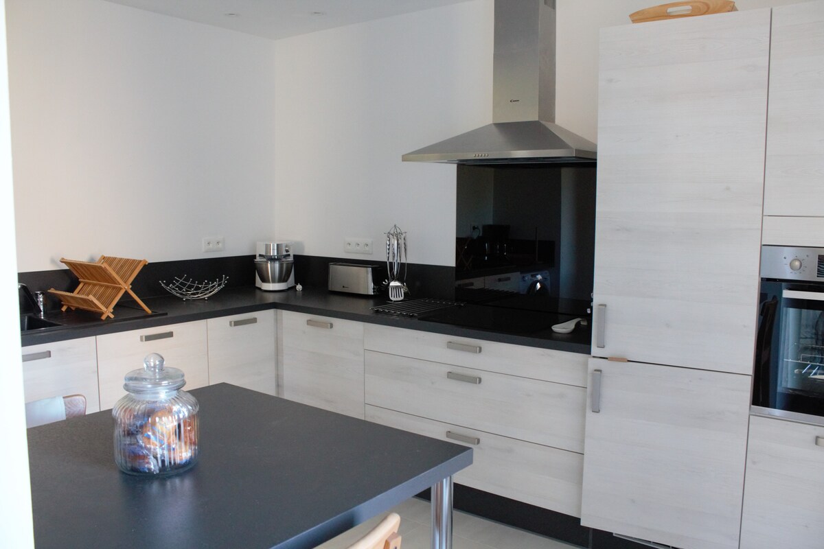 En casa rural de 2 alojamientos adosados, Planta baja: sala de estar de 30 m2 con cocina, microondas, cafetera, hervidor de agua, lavavajillas, nevera-congelador sala de estar con TV , wifi en la planta superior: 1 habitación con 1 cama de 140 cm 1 dormitorio con 2 camas de 90 Cuarto de baño con ducha e inodoro Gran parcela sin vallar, muebles de jardín, barbacoa Lavadora y secadora en la dependencia situado a 20 minutos del mar Camas hechas a la llegada toallas incluidas Se admiten animales bajo petición. No se admiten perros de 1ª y 2ª categoría.