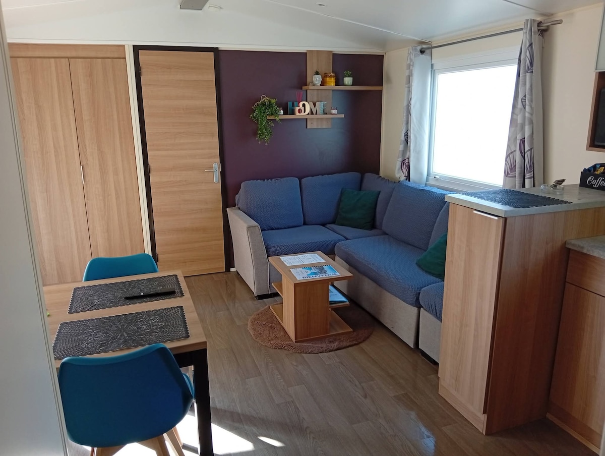 Ubicada en el fondo del jardín, el Ty Neizh (pequeño nido en bretón), le espera para pasar un momento fuera del tiempo. Romántica y bohemia, la caravana ofrece una cama para dos personas (160x180) y una pequeña y acogedora sala de estar. Las comidas se pueden tomar en la terraza, en el jardín o en la caravana. El baño y el aseo son independientes, están situados en la casa principal y son accesibles día y noche Desayuno de productos locales disponible por un suplemento de 5 €/persona.