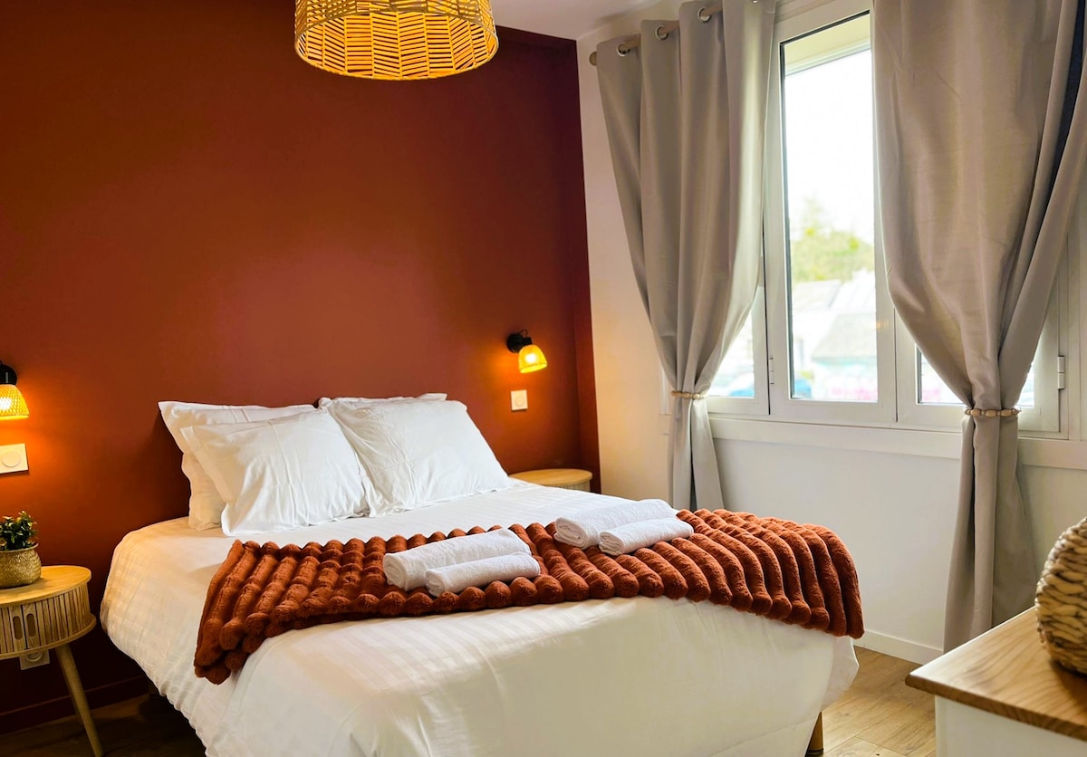 Hola y bienvenido a nuestro nuevo T3 diseñado para ofrecer todas las comodidades necesarias durante sus desplazamientos Tanto si está aquí por trabajo como por placer, le ofrecemos un entorno tranquilo en una residencia tranquila y segura. Situado en el centro de la ciudad, las tiendas y servicios están muy cerca (supermercado, panadería, banco, centro médico...) El parque de exposiciones y el aeropuerto están a 5 km Hay autobuses directos al metro de Rennes.