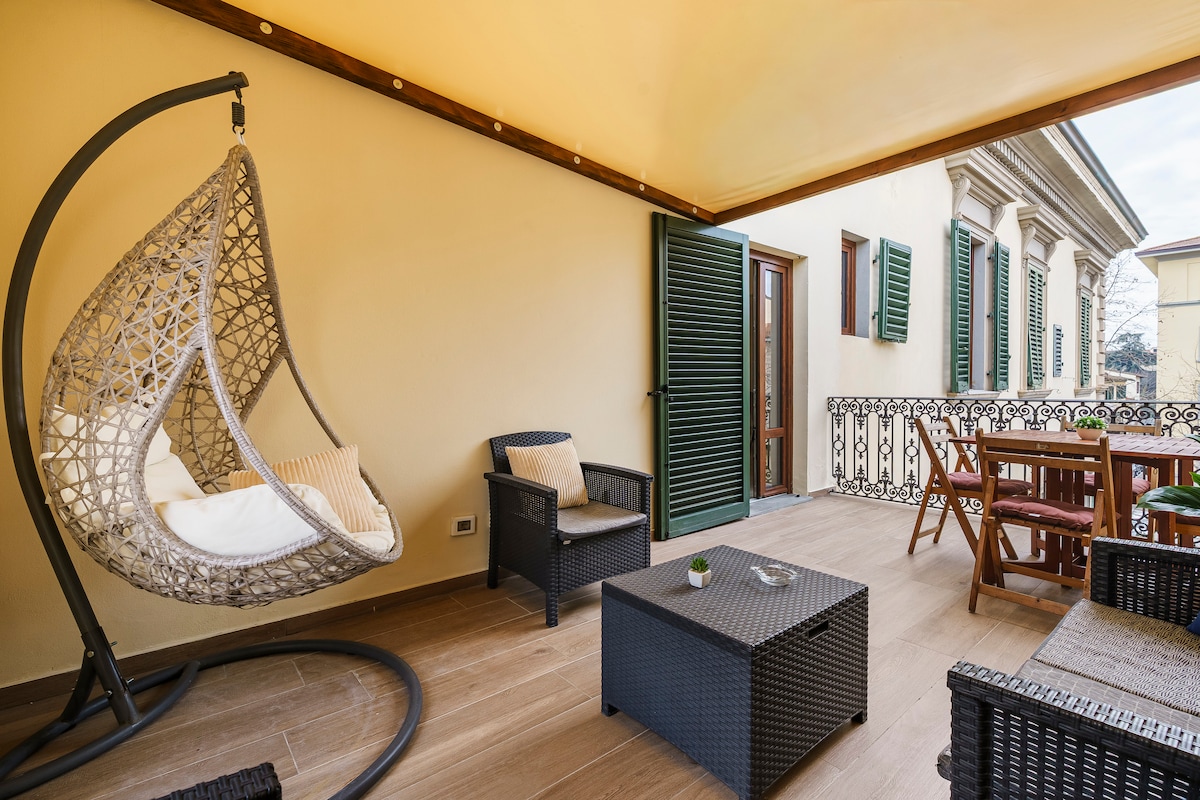 Sube la escalera de mármol blanco hasta la impresionante terraza de la azotea, con vistas inolvidables de las colinas que rodean Florencia y el centro histórico. Este apartamento ha sido recientemente reformado, mezclando diferentes tipos de arquitectura y diseño. En el apartamento hay mucho espacio para tu estación de trabajo inteligente: internet es rápido y fiable, accesible desde todos los rincones. Tenemos especial cuidado en desinfectar todas las áreas críticas, en particular el espacio se desinfecta mediante generadores de ozono. El apartamento está recién reformado con un gusto muy especial, mezclando diferentes estilos en la arquitectura y el diseño. Es un apartamento de 2 plantas en el último piso de un edificio de mediados del siglo XX justo a las afueras del centro histórico de la ciudad: en la primera planta están los dormitorios (una suite y un segundo dormitorio), el baño y un vestidor. La suite se presenta con una elegante sala de estar con una industria separada en vidrio y hierro que la divide del dormitorio doble con balcón y chimenea. El segundo dormitorio tiene un gran armario con espejos, un buen sofá y dos camas individuales que se pueden disponer a voluntad. A través de una elegante escalera de mármol blanco tenemos acceso a la nueva cocina en la azotea y a la amplia terraza con vistas a las colinas que rodean Florencia y a lugares de los antiguos edificios del centro histórico. El apartamento está totalmente reservado para nuestros huéspedes, el acceso a él es por la escalera o por ascensor con acceso privado al piso. La terraza de la azotea es solo para nuestros huéspedes con acceso exclusivo desde el interior del apartamento por una escalera. En la misma planta, en un piso separado, viven los propietarios, ¡siempre dispuestos a ayudar! El propietario vive al lado y siempre está disponible si es necesario. Chez Geraldine es un apartamento a las afueras del centro histórico. Es predominantemente un distrito residencial, pero la catedral, la Galería de la Academia y la Plaza de San Marcos están a 15 minutos a pie. Tiendas de comida, restaurantes y bares están muy cerca. DISPONIBLES 4 BICICLETAS (tamaño adulto) para nuestros huéspedes, incluidas en el precio. Por favor, úsalas con cuidado y ciérralas bien cada vez que las dejes sin vigilancia, gracias. EN CASO DE ROBO O DAÑOS GRAVES POR NEGLIGENCIA, SE TE PEDIRÁ QUE PAGUES EL VALOR DE LA BICICLETA DE 160 €. Gracias. A PIE: el centro de la ciudad está a solo 15 minutos a pie. EN AUTOBÚS: a pocos pasos del edificio hay autobuses al centro de la ciudad y a la estación.