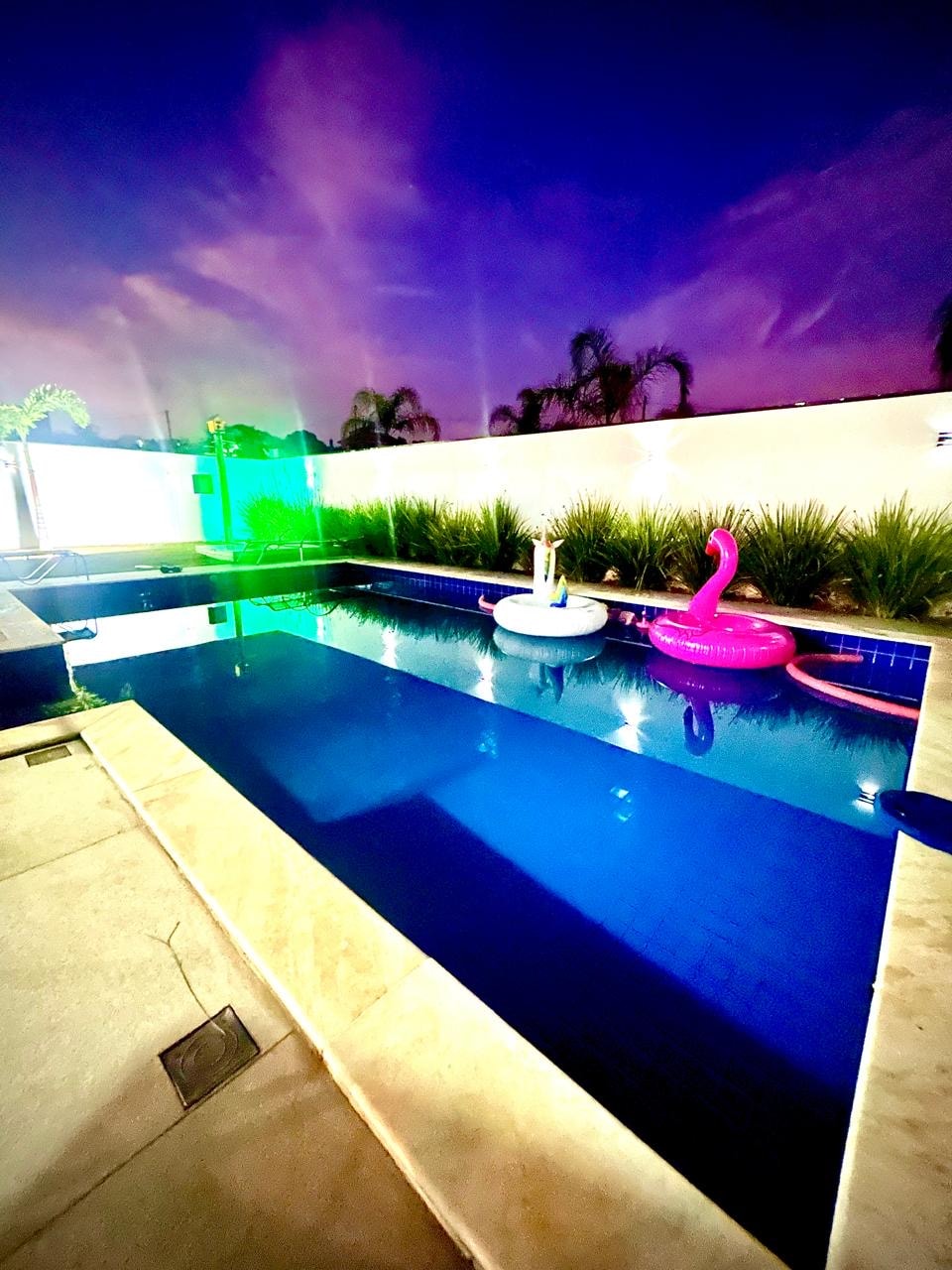 Casa nova, linda e decorada, piscina suspensa (mais segurança para crianças e pets). Em condomínio com segurança 24h. A área conta com 3 quartos, 3 banheiros , 1 cozinha completa, 1 sala, área gourmet equipada com utensílios, 3 TVs (com aplicativos para séries e filmes), eletrodomésticos, lavanderia e um quintal espaçoso com 3 redes disponíveis para relaxar. Todos os quartos possuem ar-condicionado.