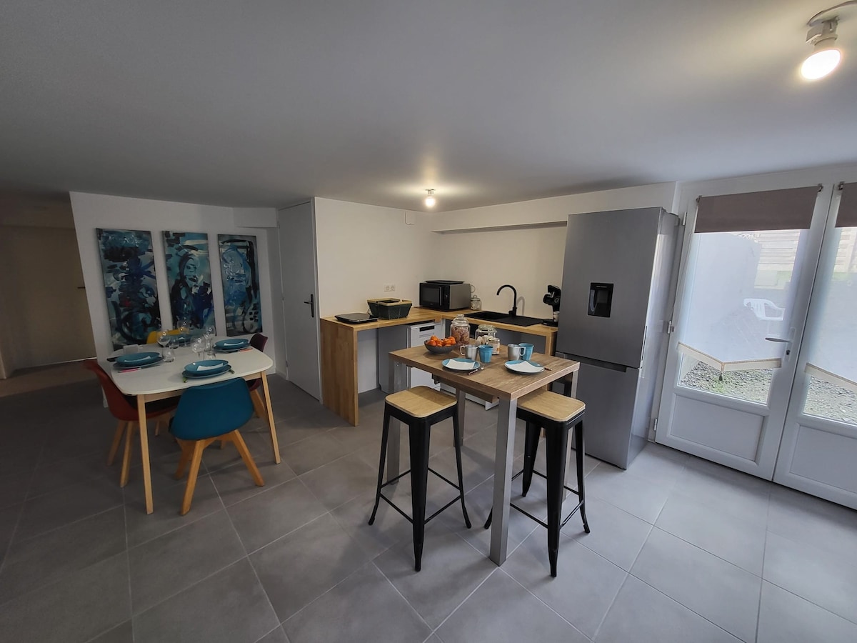 Suite Sous Velux, apartamento para 4 personas. Entre Le Croisic y Nantes, cerca de la famosa playa de La Baule, descubra Saint-Nazaire, sus playas y sus actividades. A 400 metros de la estación de tren y cerca de todos los servicios, este apartamento de 35 m² ofrece todas las comodidades necesarias para una estancia relajante, turística o profesional. Incluye una cocina equipada, una acogedora sala de estar y un dormitorio principal con todas las comodidades (ropa de cama incluida).