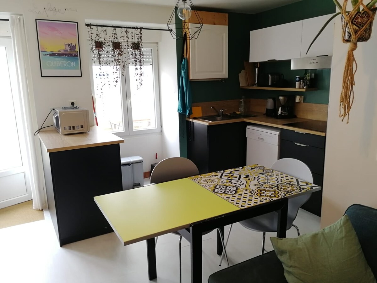 ¡Vistas impresionantes de la bahía de Quiberon desde la entrada del estudio! Entorno tranquilo y recargable. Disfruta de las comidas en la terraza semicubierta (este/sudeste) con un jardín vallado, que permite tomar todas las comidas durante gran parte del año. El estudio está en un pequeño colectivo, el acceso se realiza a través de un vestíbulo exterior, la terraza está aislada del vecindario. La playa (a 200 m) es accesible directamente a través de un camino. Los servicios están a 5 minutos a pie.