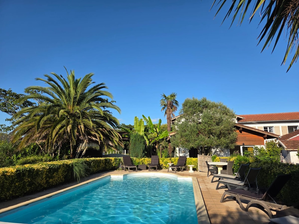 Encantadora villa renovada del siglo XIX de 340 m2, clasificada de 3*, construida por Stone Masons, con comodidades modernas enclavadas en un entorno natural sereno, ideal para vacaciones relajantes u teletrabajadores. Piscina privada de agua salada climatizada de 4mx9m, abierta de mai a octubre, orientación de la terraza de la piscina suroeste con vista a los Pirineos y hermosas puestas de sol. Playas de Hossegor y Cap Breton a 25minutos Parrilla/ Pérgola/área para tomar el sol Comedor al aire libre techado Fibra wifi Estacionamiento privado