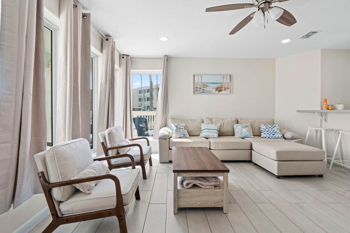 ¡Escápate a un paraíso costero en nuestra exclusiva comunidad cerrada, donde te espera una casa frente al mar de 1050 pies cuadrados! Disfruta del lujo puro en nuestra morada, que cuenta con una amplia terraza con vistas al golfo de México, además de características adicionales como jacuzzi, piscina, parque infantil y parrilla para barbacoa. Disfruta usando el televisor inteligente de alta definición y el wifi de 300 Mbps ultrarrápido, ¡todo dentro de un entorno apto para mascotas! La mejor parte es la casa «hermana» de Sea-Vista, Sea-Esta, que está justo al lado. ¡Reserva ambas para disfrutar de un viaje inolvidable en familia/con amigos!