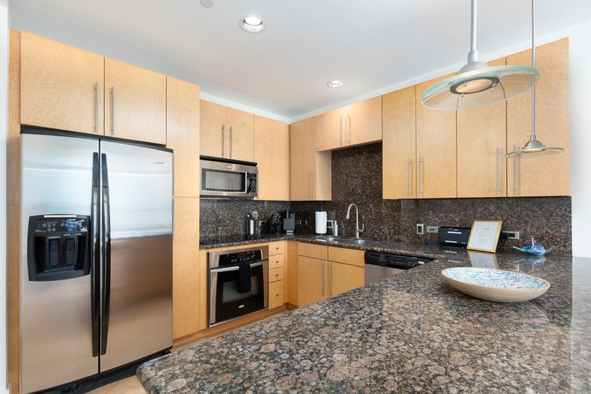¡Vistas★ parciales al mar y a la bahía! ¡A 2 minutos a pie de la playa! Wifi ★rápido, entrada sin llave, TV por cable con Netflix. Limpieza, desinfección y saneamiento de★ 5 estrellas. Unidad de★ esquina con ventanas desde el techo hasta el suelo. A ★poca distancia a pie de muchas tiendas y restaurantes. Piscina ★climatizada, jacuzzi y solárium. ★Tumbonas, toallas de playa, tablas de body y juguetes de playa incluidos, GRATIS. ★Contempla los fuegos artificiales desde tu balcón privado. Las persianas★ motorizadas ofrecen privacidad. Cocina ★totalmente equipada con todo lo necesario. ★Cama cómoda = tu lugar perfecto.