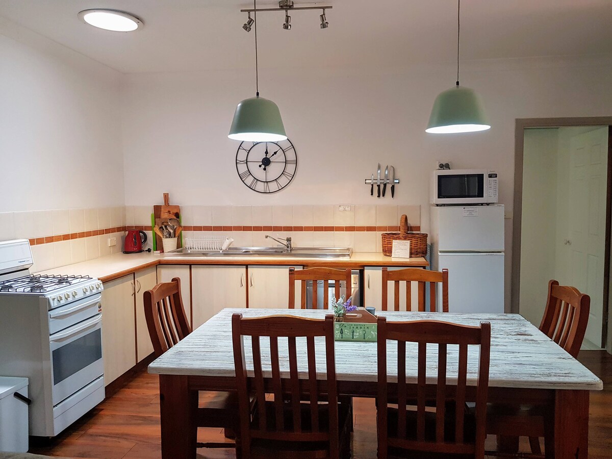 Relájate con tu familia y amigos en esta escapada tranquila, lejos del ajetreo y el bullicio de la vida cotidiana. Estás a solo 5 minutos a pie de las tiendas de Nabiac Village, incluida una cafetería y un pub, ambos con excelente comida. Piscina local (cerrada en los meses de invierno), parque de patinaje para niños y parque infantil. Los mercados se celebran cada último sábado de mes en el recinto ferial que está justo al otro lado de la carretera. Forster/Tuncurry está a 20 minutos en coche. Ven a relajarte al Boomerang, seguro que volverás.