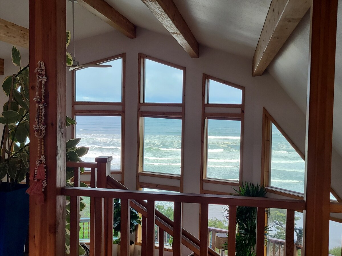 The Point ofrece las vistas más increíbles del océano y la playa de la costa sur de Oregón y posiblemente del mundo. Te sientas a 100 pies sobre el agua en nuestra propiedad frente a la playa mirando el muelle y el puerto al este y Battle Rock y un largo tramo de playa al oeste. Puedes ir caminando hasta el final de la propiedad y disfrutar de tu bebida favorita en la terraza del acantilado sobre el agua. Tienes unas vistas verdaderamente magníficas desde nuestros estudios de primera línea.