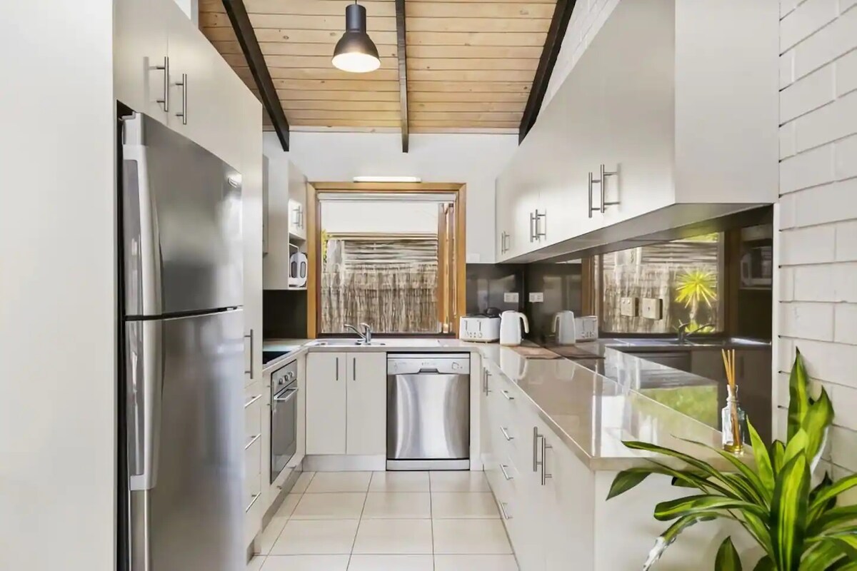 Con una ubicación céntrica en el casco antiguo de Barwon Heads, esta pequeña pero espaciosa casa ofrece todo lo necesario para disfrutar de unas vacaciones relajantes y sencillas en la playa. Esta joya oculta es un refugio tranquilo, pero muy cerca de todo lo mejor que Barwon Heads tiene para ofrecer. A solo 1 minuto a pie del mejor café de la ciudad, a pocos minutos del río, la playa y el campo de golf de Barwon Heads, ¡simplemente aparca tu coche y no vuelvas a subirte a él hasta que te vayas a casa!