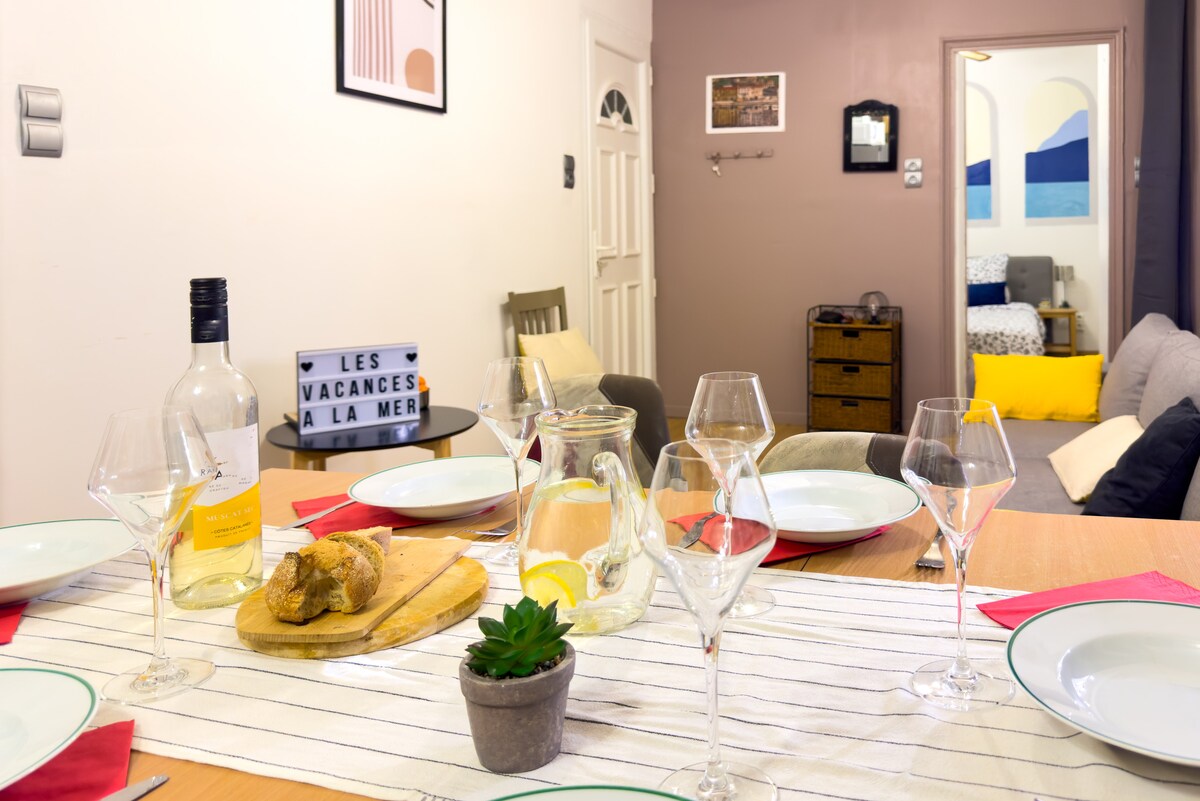Alojamiento de 50 m2 que consta de 2 habitaciones grandes con acceso directo al baño. Una televisión por habitación. Una pequeña cocina equipada con placas de inducción, microondas, nevera, cafetera, hervidor de agua. Tiene lo necesario para cocinar. Tiene una mesa con taburetes altos en la cocina. No hay sala de estar. Piso equipado con aire acondicionado reversible. Situado cerca del puerto y de todos los comercios. Cerca de Colliure, a 30 minutos a pie o a 5 minutos en autobús por 1 €.
