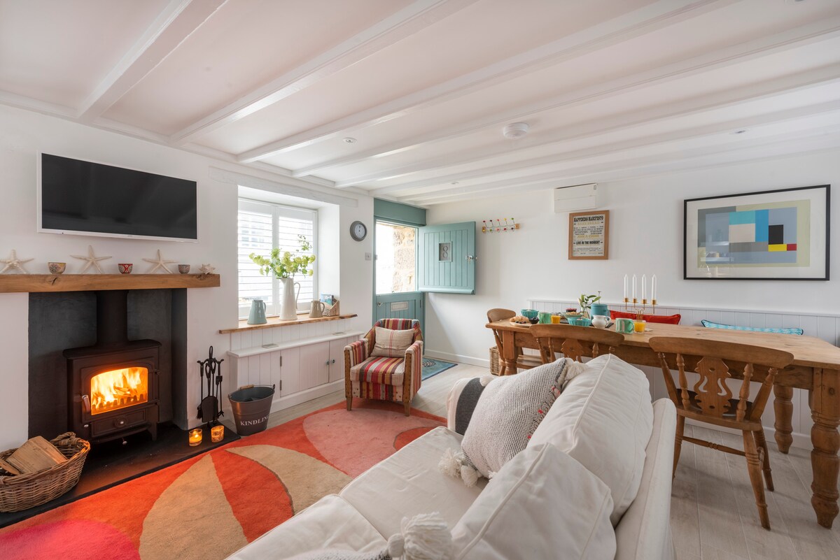 Beautifully refurbished 3 storey / 3 bedroom cottage with incredible sea views, perfectly positioned above Bamaluz beach. Nestled right in the heart of old Downalong surrounded on 3 sides by beautiful beaches and stunning coastal scenery, just moments from St Ives harbour and the town’s charming restaurants, galleries and shops. The courtyard is the perfect spot to relax in the evening sunshine, and during the cooler months the velvet sofa is perfect for a cosy night in front of the fire.