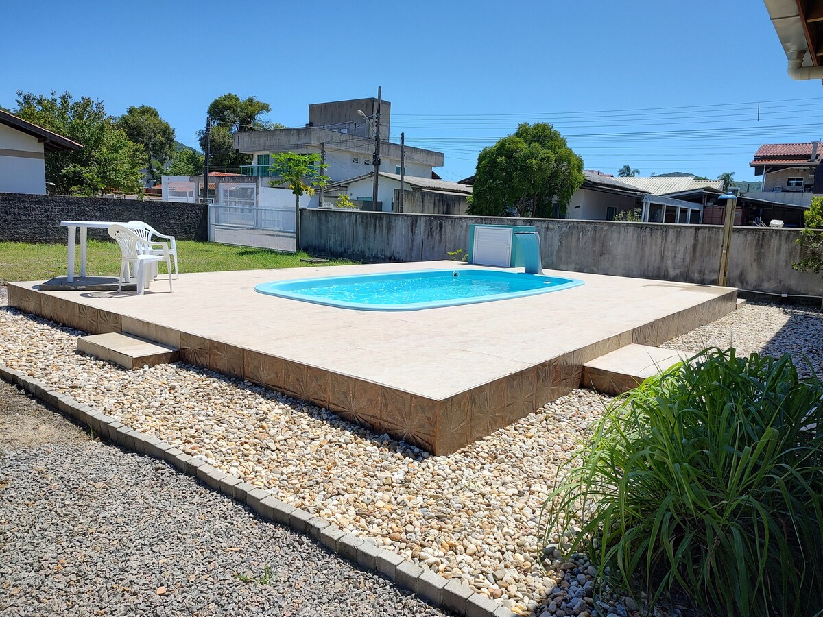 Casa con 1 suite. amueblada a medida con cocina completa, 2 baños con caja, aire acondicionado por cable LED, con alojamiento para 5 personas, espacio de estacionamiento, patio cerrado, lavadora, barbacoa, patio cerrado, Internet wifi, puerta electrónica Ubicado en Rua Beija Flor, a 800 metros del mar en Bombas Beach, Bombinhas.