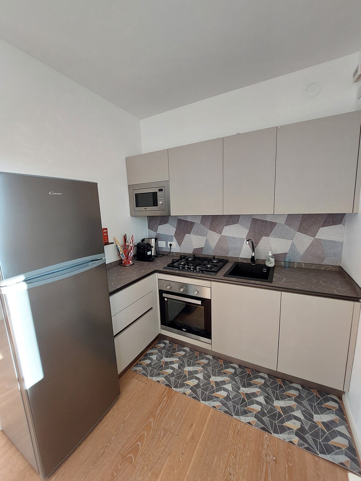 Apartamento de dos habitaciones en el primer piso con ascensor en un contexto elegante y moderno, que consta de un amplio salón con cocina americana totalmente equipada con lavavajillas y sofá cama doble, trastero con lavadora, baño con ducha, dormitorio doble. Gran terraza panorámica habitable, plaza de aparcamiento reservada. Wifi, aire acondicionado, calefacción central y una televisión inteligente.