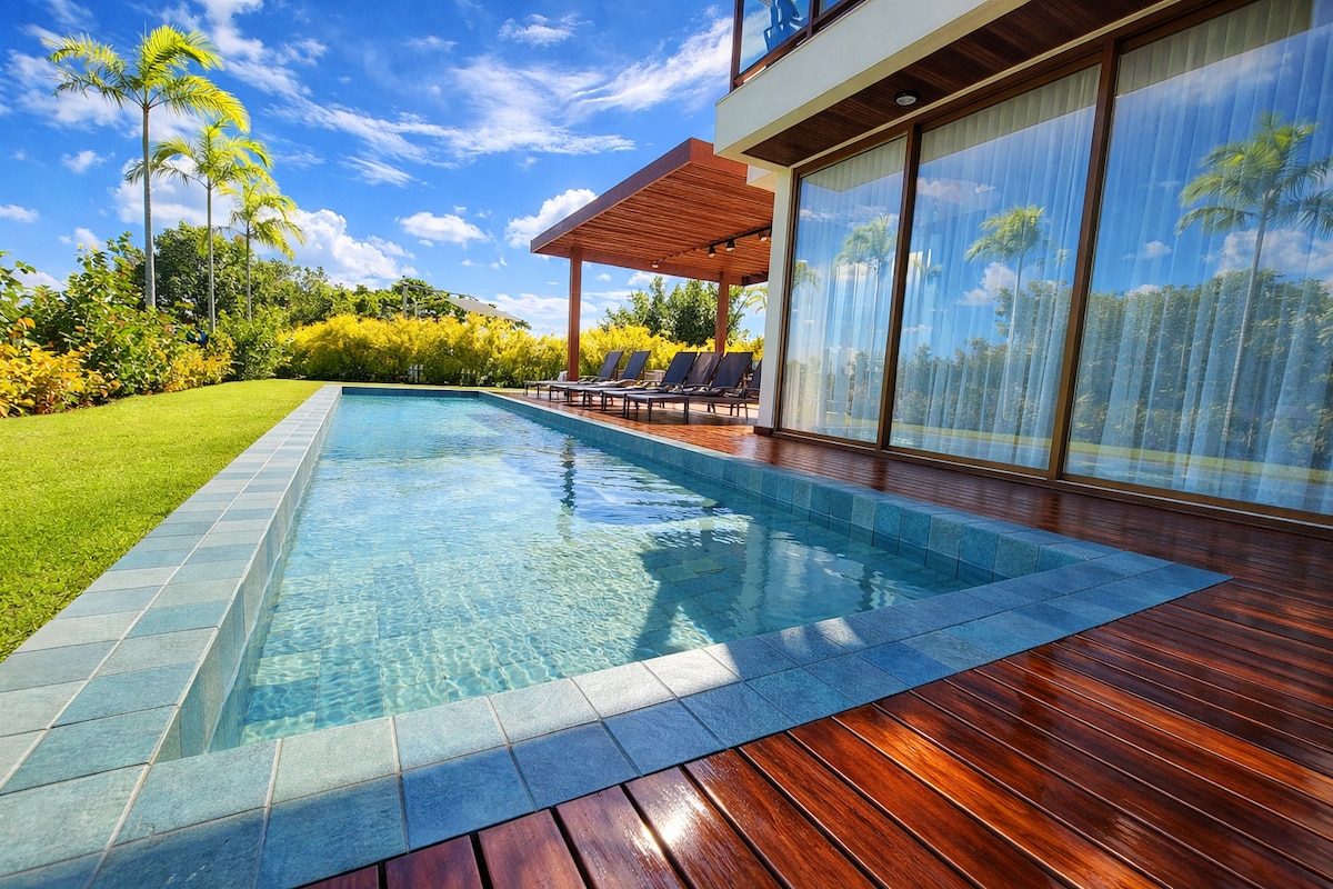 Casa con piscina entre la laguna y el mar para descansar.