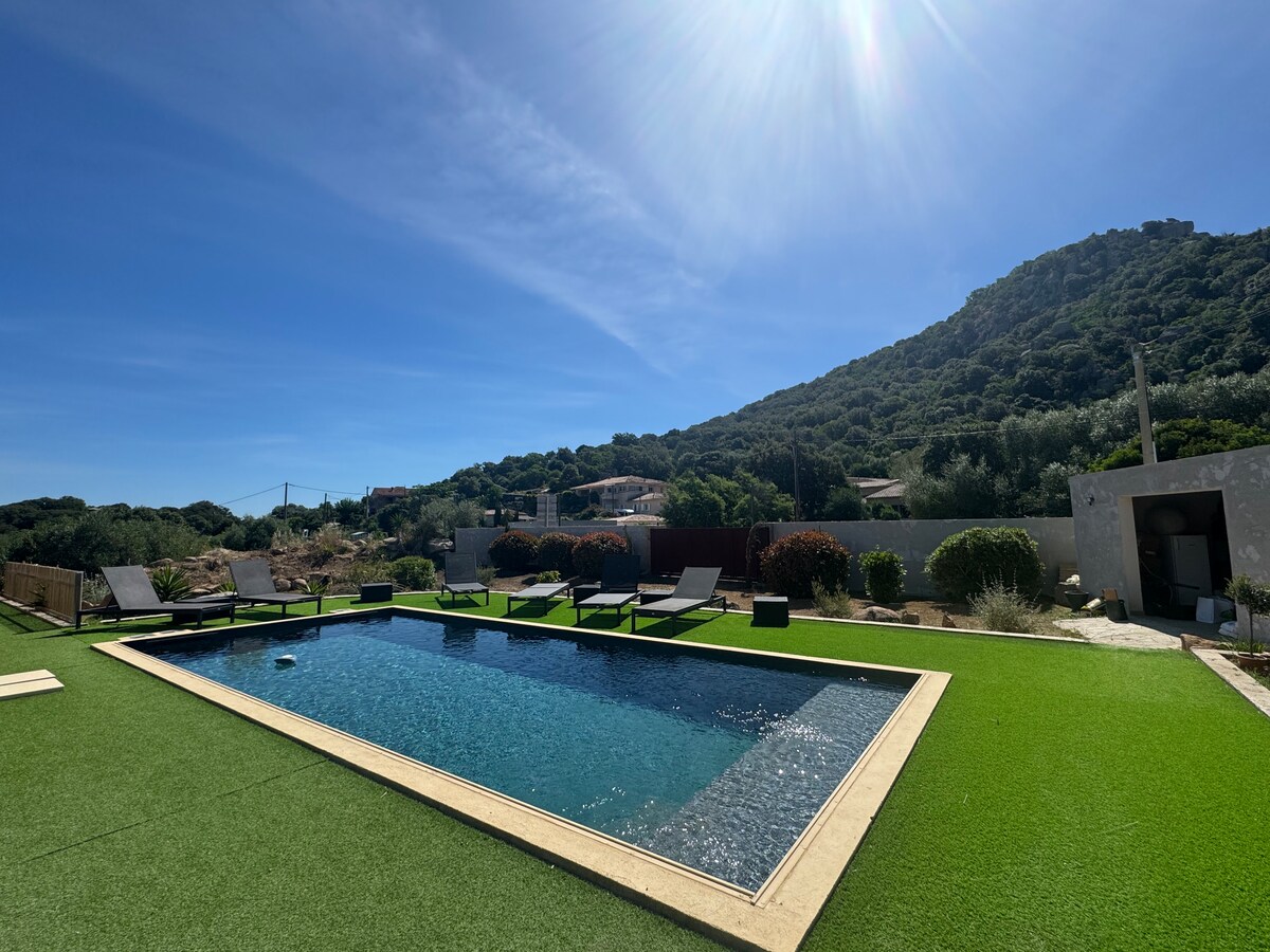 Venez profiter du temps long d'un repas d'été en terrasse, dans ce cadre apaisant où la vue sur la forêt, et le calme du lieu permettent de décompresser, Après s'être fait plaisir avec un coktail dans la piscine chauffée, ou la lecture d'un bouquin dans la baignoire de la Masterpiece, vous pourrez aisément vous rendre à la plage la plus proche, qui est à 10min, ou profiter du charme d'une rivière Corse, à 5min de la villa. PS: les frais ménage sont remboursé si effectué par vous même
