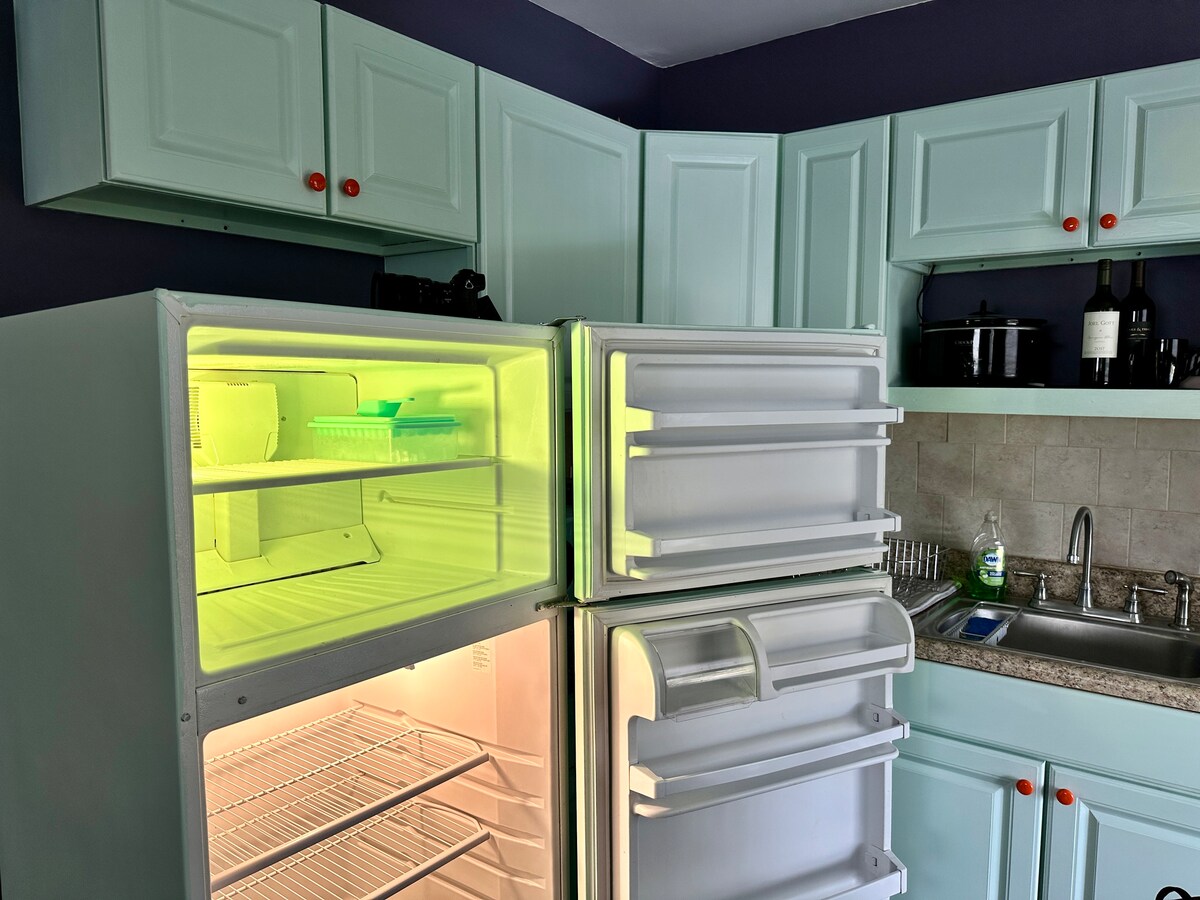 ¡Este precioso apartamento loft está justo en el centro de Brunswick! El apartamento ofrece una cama tamaño queen en la planta principal y dos camas individuales en el loft. Hay un pequeño sofá seccional que se puede utilizar como espacio adicional para dormir. El apartamento ofrece una cocina totalmente equipada con fogones, horno, microondas y nevera, además de lavadora y secadora. Hay wifi y un televisor inteligente, que está en un soporte giratorio para que puedas ver tus servicios de streaming favoritos desde el sofá o la cama.