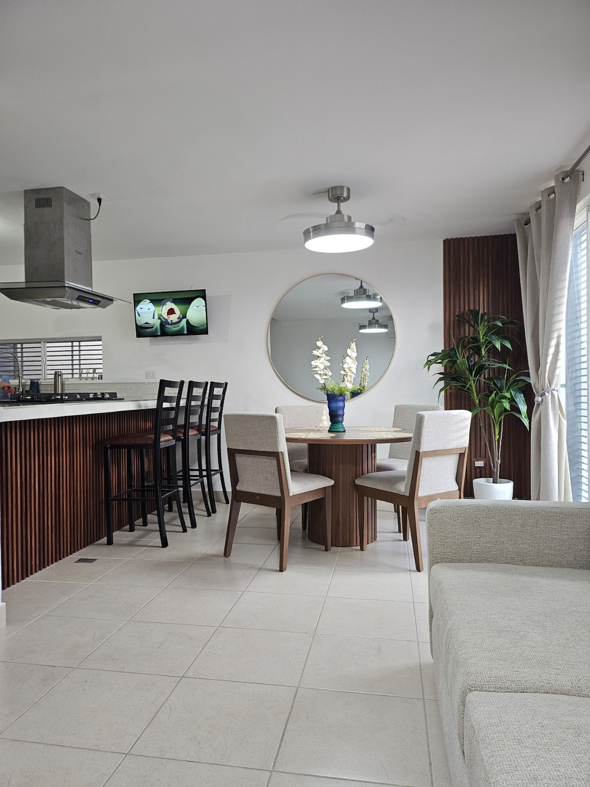 Disfruta un espacio moderno con vista a la laguna, a solo 15 min del aeropuerto. Relájate en la playa artificial, disfruta del kayak y aprovecha el gimnasio y áreas recreativas. El departamento es ideal para familias, grupos o viajes de trabajo. Cocina equipada, Wi-Fi rápido, entrada automática y estacionamiento para 2 carros. Vive comodidad, tranquilidad y excelente ubicación en un solo lugar.