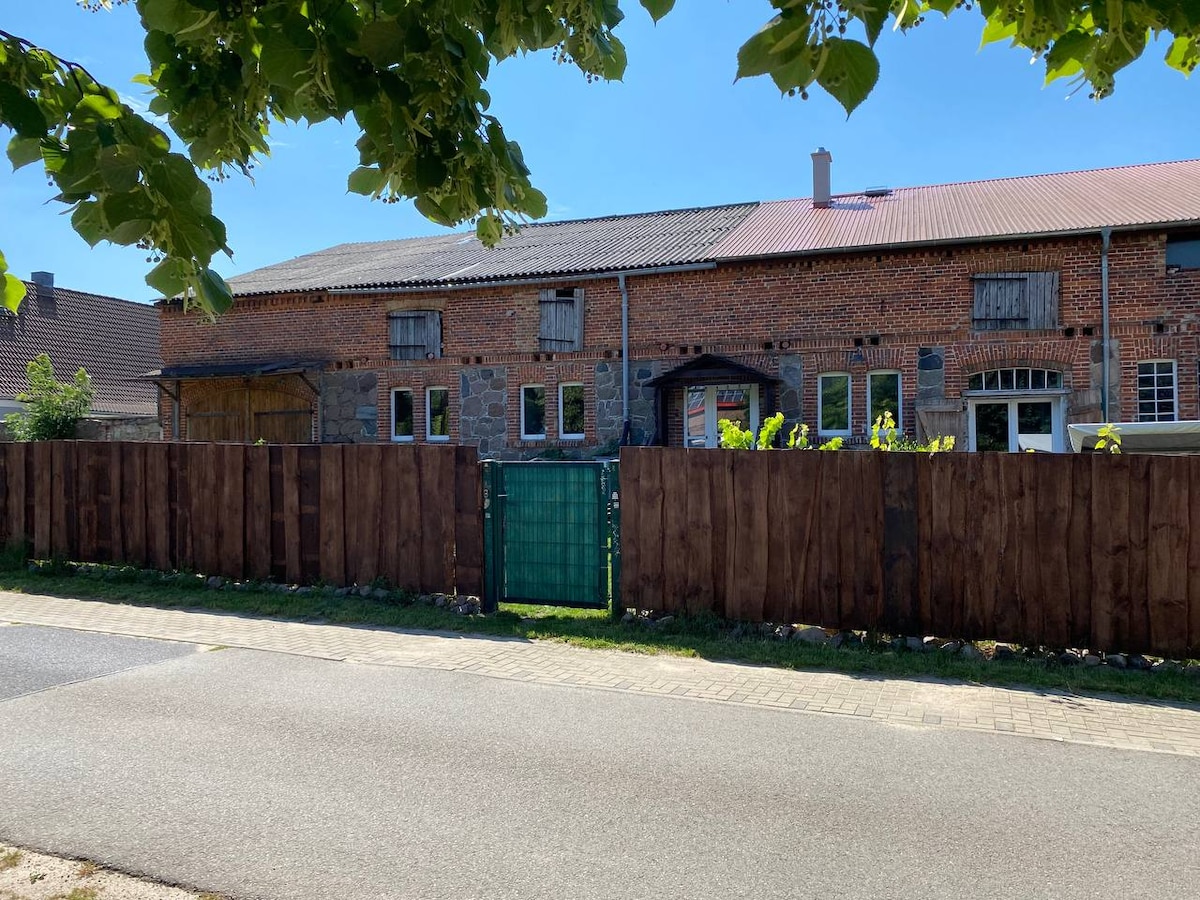 Acogedor apartamento para toda la familia y grupos más grandes. El apartamento tiene 2 habitaciones dobles, 2 habitaciones dobles y una sala común con cocina americana. Cada habitación tiene su propio baño con ducha y aseo. El departamento está ubicado en un antiguo establo de campo y piedras de clínker y es parte de la finca Suckow, que fue construida entre 1860 y 1890.