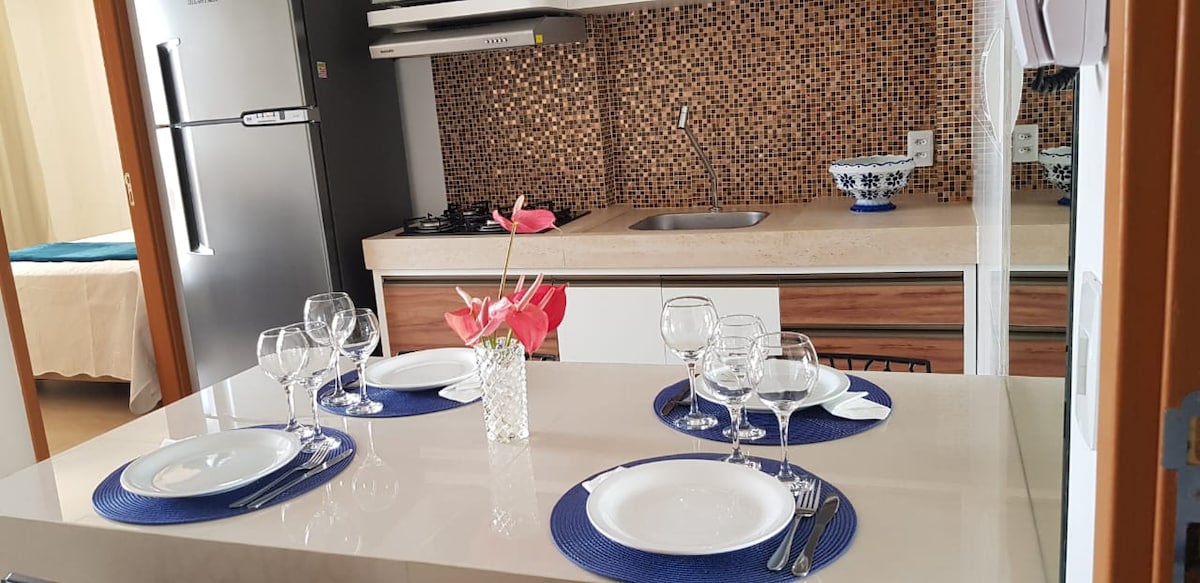 Hermoso y acogedor apartamento decorado con buen gusto y lujosamente. Situada frente a una de las playas más hermosas de Brasil, la playa Carapibus con sus aguas cristalinas y cálidas, con piscinas naturales separadas entre piedras. El apartamento cuenta con utensilios de cocina para tu comodidad, como microondas, nevera, utensilios de cocina, platos y vasos, así como un nuevo patio completo para un máximo de 4 personas. Comodidad, comodidad y belleza para ti