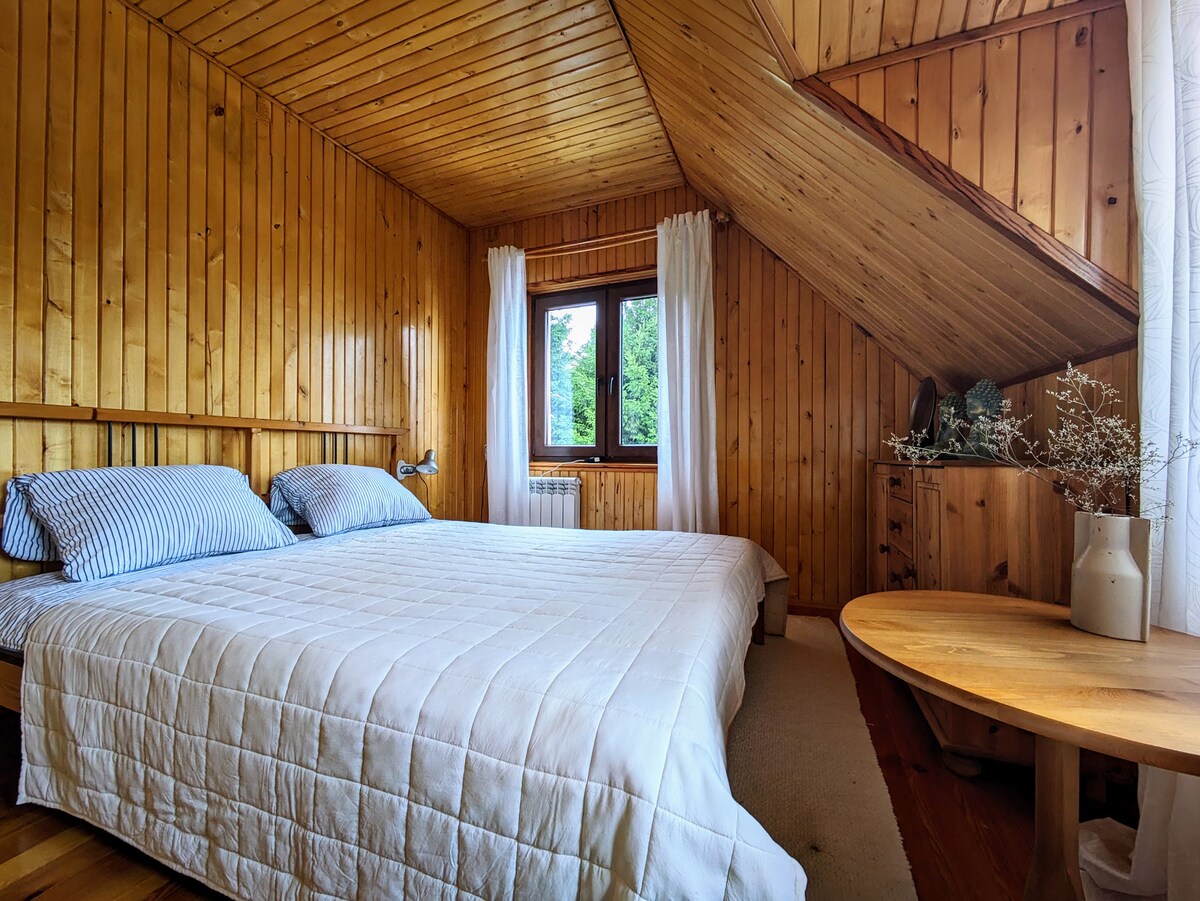 Siéntete libre de unirte a una casa de campo durante todo el año en mazurkas, ubicada en una pintoresca zona forestal, con mucha privacidad y un amplio patio trasero. Barrio más cercano a unos 200-300 m Hay 2 habitaciones disponibles para los huéspedes: una con dos camas individuales y la otra con una cama de matrimonio y una sala de estar. Teóricamente, 4 lugares, pero nada impide que más personas se queden en la cabaña (se puede dormir en el suelo, también se puede montar una tienda de campaña en el patio trasero). Las mascotas también son bienvenidas :)