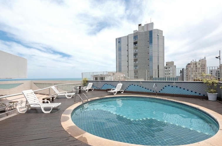 Apartamento en el Hotel Bristol, en el centro de Guarapari, con piscina, sauna, gimnasio y juegos. Situado en la calle principal. Basta con bajar y ya se encuentra en la playa de Areia Preta. Tiene aire acondicionado. Plaza de garaje, excepto en temporada alta y festivos. Cerca de panadería, farmacia, supermercado, bancos y restaurantes. Cuenta con ropa de cama y toallas, microondas, secador de pelo, cafetera, batidora, sandwichera, sombrilla y silla de playa. Recepción 24 horas