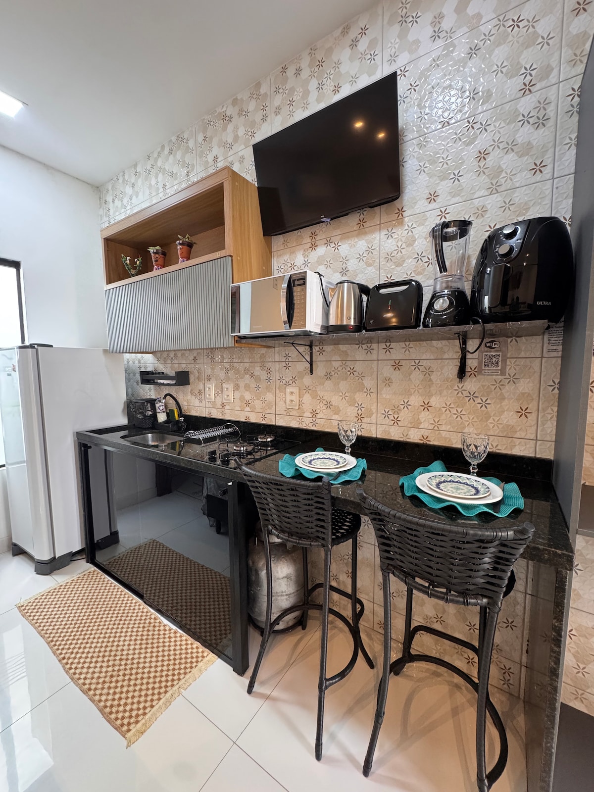 Apartamento mobiliado, com três suítes, forneço roupas de cama e banho . Quartos equipados com ar condicionado . TV com Netflix, IPTV, You tube, internet em todo local. Cozinha equipada com fogão, geladeira, microondas, liquidificador e utensílios. Garagem coberta e privada para um carro. Terraço compartilhado comigo e ou outros hóspedes da unidade ao lado.