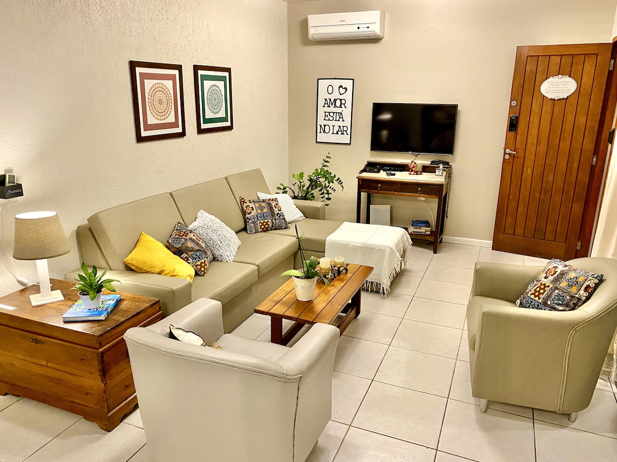 Apartamento moderno y confortable, inaugurado en 2020, con las siguientes comodidades: -aire acondicionado split en la sala, inverter en el dormitorio -smart tv 40'' con streaming - wifi de alta velocidad -cama doble en el dormitorio -sofá cama para 2 niños o 1 adulto en la sala -cocina equipada/completa -ropa de baño/cama (1 juego por persona para estancias de hasta 7 días) - ducha de gas y secador de pelo -intercomunicador para la comunicación -a 10 metros de la playa