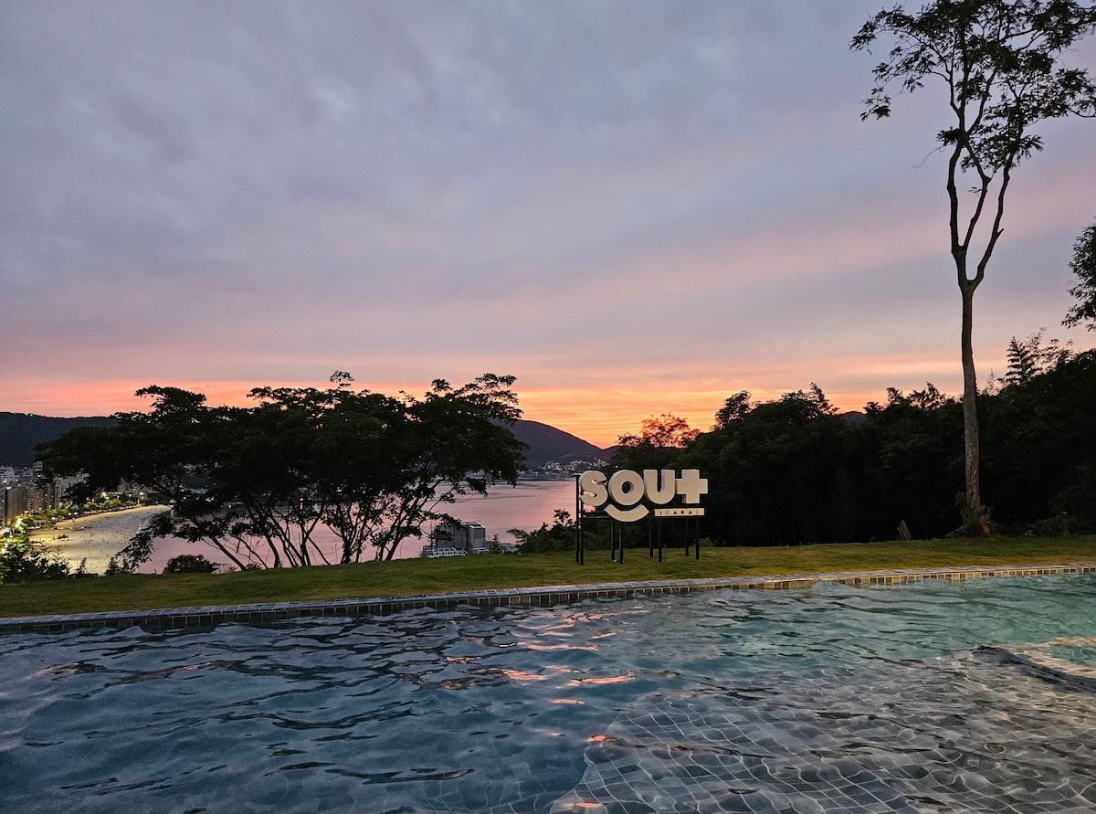 ¡Loft completo junto a la Plaza Niterói, a 5 minutos del paseo marítimo de Icaraí! Junto al centro comercial, restaurantes, cines, Uff, cafeterías, gasolinera, estacionamiento, hospitales, MAC y la costa de Icaraí. Equipado con una cama tamaño queen, sofá cama, wifi, TV, escritorio, cocina completa, aire acondicionado, cortinas opacas, armario con perchas, plancha de vapor; gimnasio, portabicicletas, trabajo conjunto, etc. Ideal para una pareja, familias o amigos; ya sea para ocio o trabajo. ¡Viva Niterói con estilo!