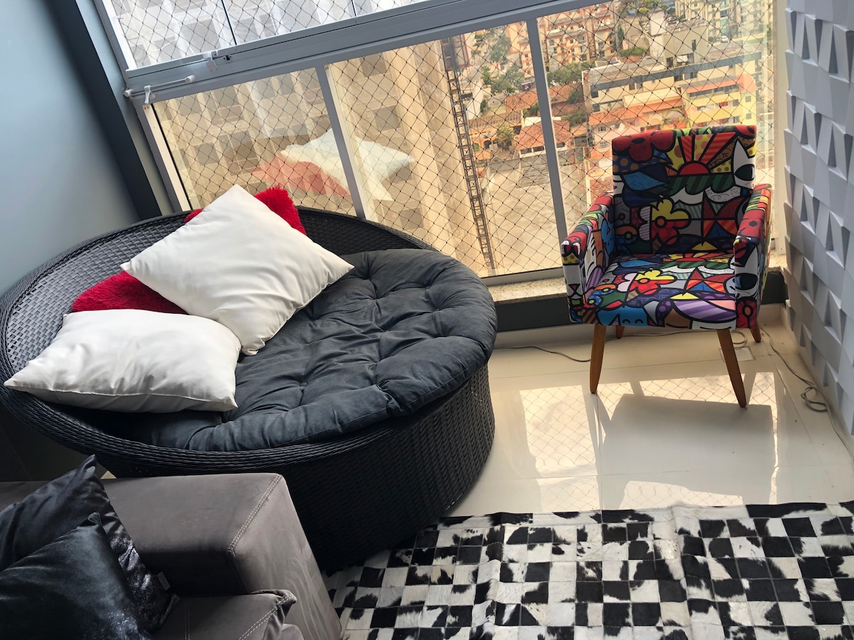 Apartamento en Praia do Canto(dormitorio, sala de estar, balcón, baño y cocina\servicio,wifi) piso alto, excelente ubicación. Estacionamiento giratorio gratuito para vehículos pequeños. Delante del Boulevard da Praia. Compras de Vitória y Curva da Jurema están a 7 minutos a pie. Cerca de las principales instituciones públicas y financieras; estas son accesibles a pie. La tienda americana está al lado. Tiene una logística privilegiada. Conserje por la noche y conserje. ¡Ubicación amueblada y segura, lista para darte la bienvenida!