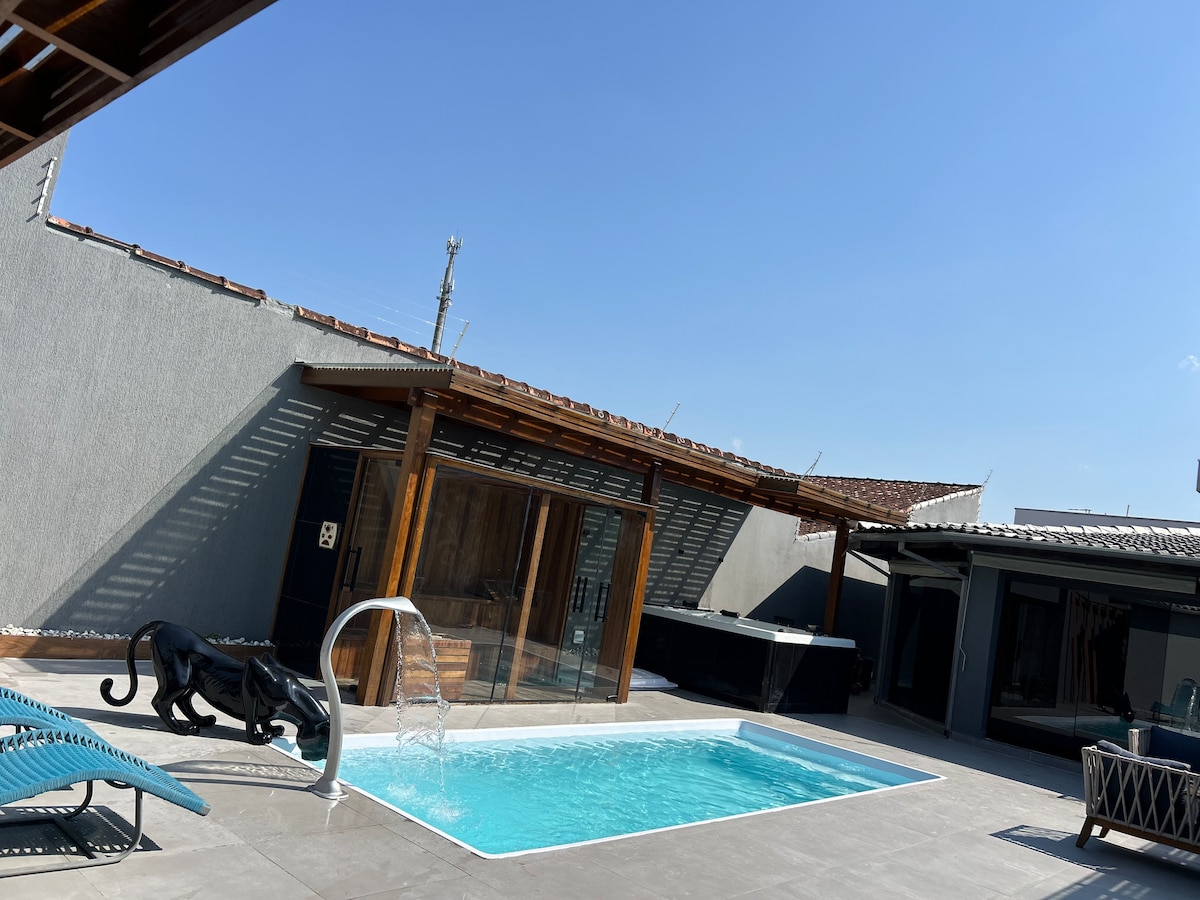 Esse Loft tiene un jacuzzi para hasta 8 personas y su interior tiene una estructura completa para tu comodidad. Tiene 1 cama doble estándar, 1 sofá articulado con capacidad para 2 adultos, espacio para 1 colchón individual más si tienes nessicity. La sala de estar está equipada con TV inteligente de 50pulgadas y Alexa. En la cocina hay inducción de cocina, horno eléctrico, licuadora, cafetera, sándwichera y más. Las sábanas y sábanas ahora están disponibles en el lugar.