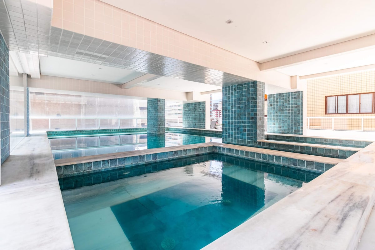 Este apartamento de 55 m² es ideal para parejas y ejecutivos en viajes de negocios. Tiene todo lo que esperas de un apartamento: practicidad y tecnología. Para aquellos que vienen a pasar la Nochevieja en Santos, pueden disfrutar de las festividades sin siquiera salir del edificio. Desde el área de la piscina, puedes disfrutar de la vista al mar, los fuegos artificiales y el ambiente festivo de la ciudad sin tener que lidiar con el tráfico, las multitudes o un viaje agotador después de los fuegos artificiales.