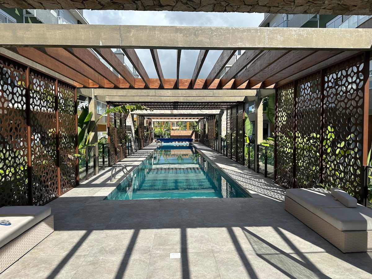 Apartamento moderno e aconchegante a 40 metros da Praia do Campeche, em um condomínio exclusivo com piscinas, pub, ofurô, academia e áreas de relaxamento. O apartamento possui design sofisticado, cama king confortável, sofá elegante e uma banheira privativa para momentos de puro relaxamento. Perfeito para casais ou pequenas famílias que buscam conforto e lazer em um dos destinos mais encantadores de Florianópolis. Viva dias inesquecíveis neste refúgio junto ao mar!