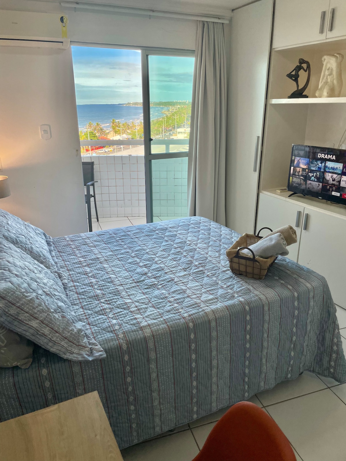 ¡Frente al mar! Ubicado en la playa de São Marcos. Avenida Litorânea . Próx do Centro Histórico. Balcón con vistas al mar Habitación con televisión de 43 pulgadas Dormitorio con aire acondicionado, cama tamaño queen y TV Baño completo Oficina en casa Cocina (licuadora, sandwichera, refrigerador, estufa, cafetera, freidora de aire y microondas) Condominio: Casa de la puerta abierta las 24 horas Plaza de garaje cubierta 2 Elevadores Cuarto de lavandería Piscina (en construcción, temporalmente cerrada) Parrilla