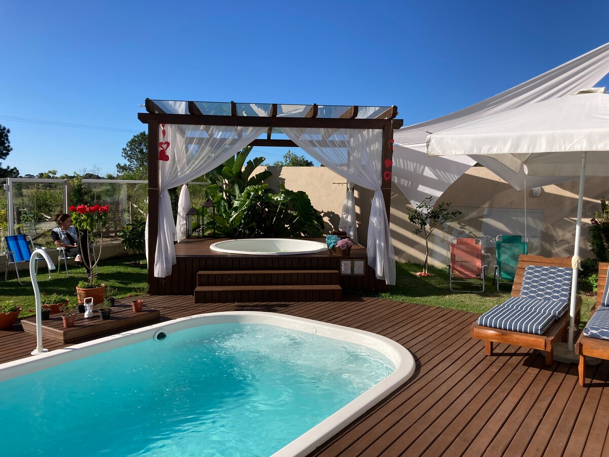 Suite con entrada privada, Solariun y terraza. piscina (jacuzzi climatizado) Zona de ocio totalmente privada. Zona de barbacoa gourmet,estufa,nevera y utensilios básicos de cocina. Ruta de reserva ecológica Santinho y Mozambique, dunas... Atención, el acceso solo a los huéspedes está expresamente prohibido el uso de sales y espumas en la piscina y el jacuzzi. (Multa de R$:300 reales) Tiempo de uso del jacuzzi de 16:00 a23:50hs