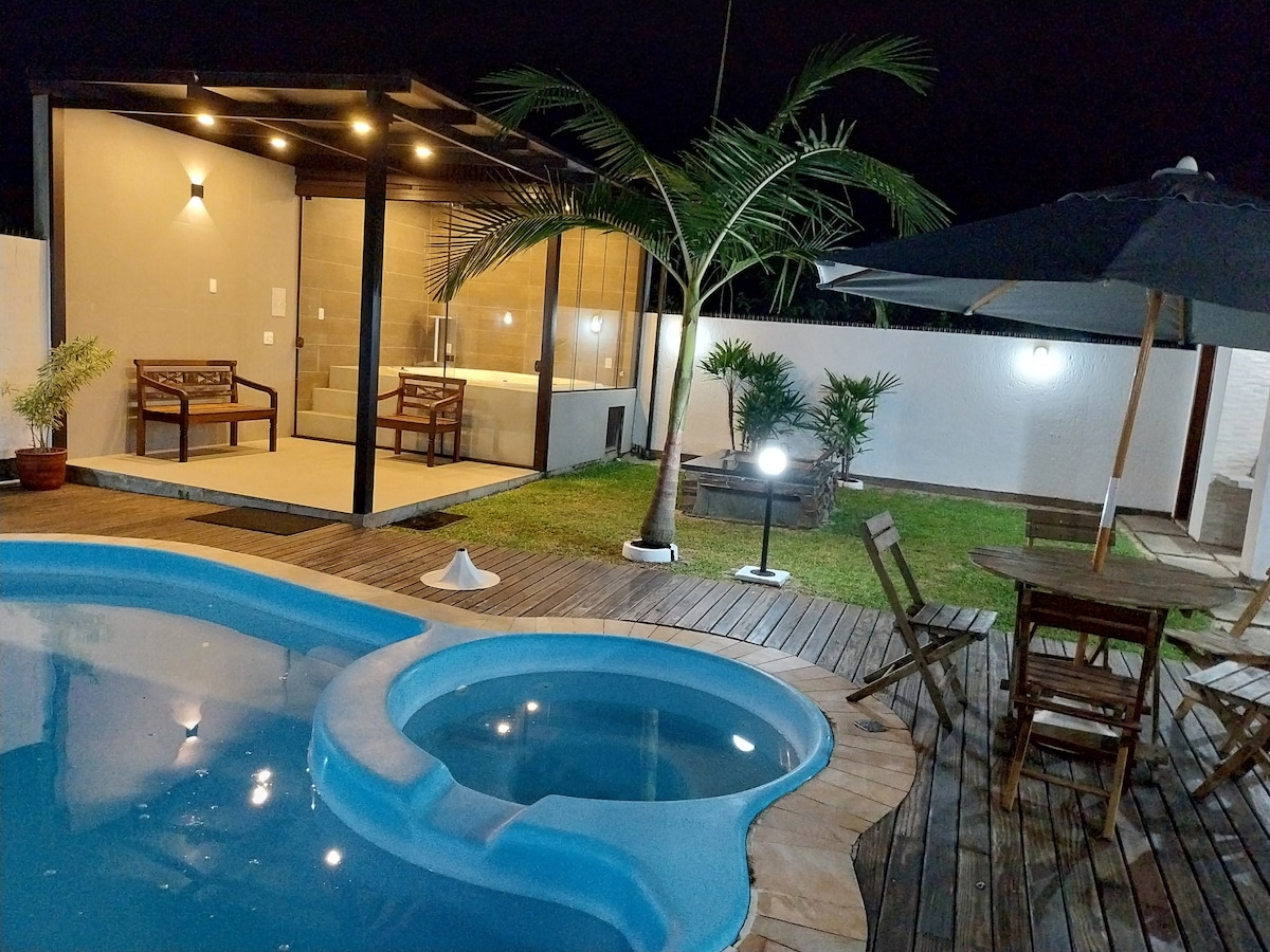 Acogedora casa con piscina ubicada en un vecindario tranquilo, en uno de los lugares más bonitos y exclusivos de la isla. El paisaje encanta en todo momento del día, con aves y mariposas dando vueltas, y cuya vista privilegiada permite disfrutar del amanecer y el atardecer en Lagoa da Conceição. El espacio tiene todas las comodidades para una estancia placentera. Tiene fácil acceso al borde de la laguna y al centro de la laguna. ¡Es un lugar único, un encanto!