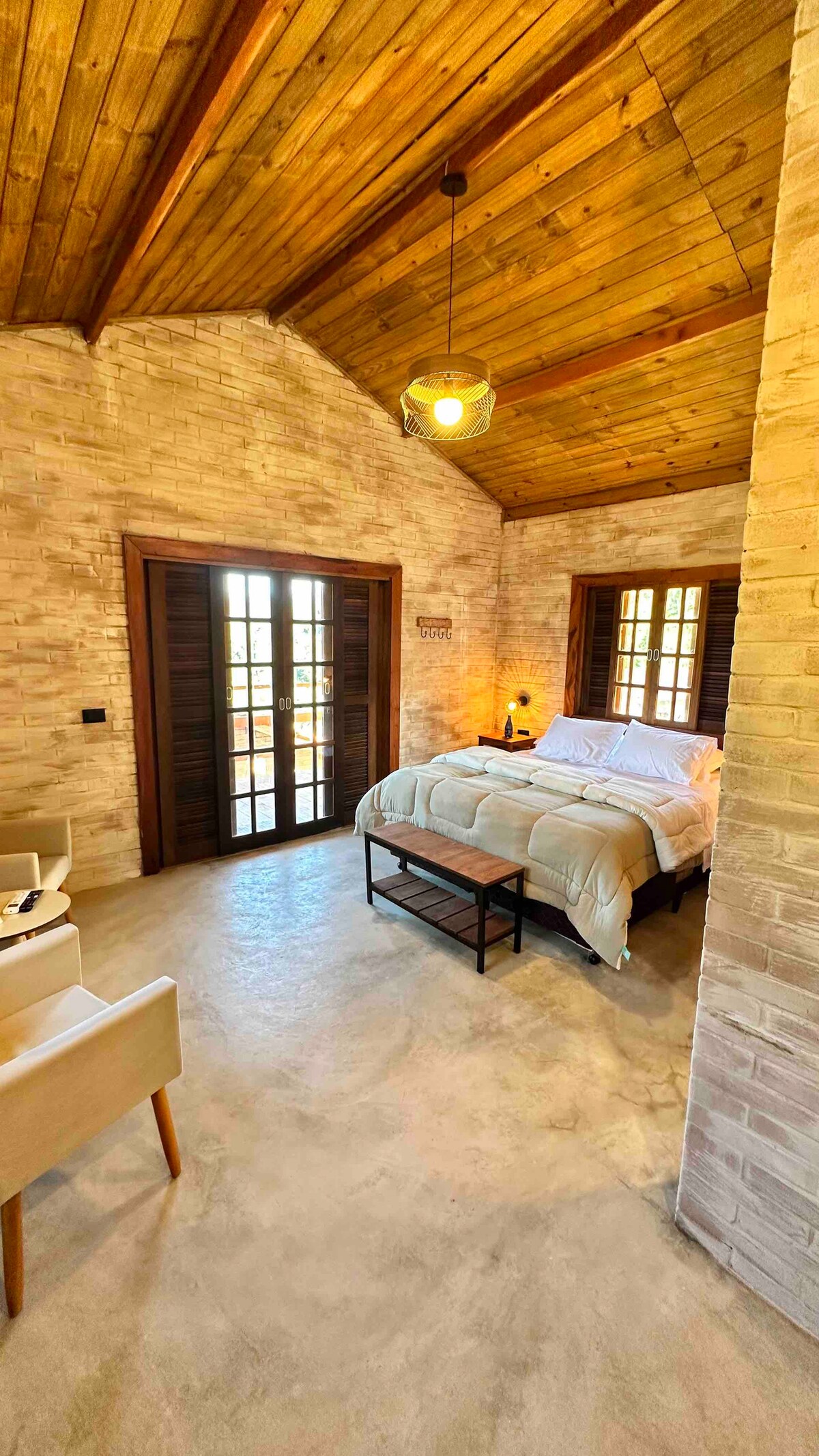 Querido por los huéspedes, el Chalet es acogedor, cómodo y rústico, ideal para parejas que buscan tranquilidad y privacidad, sin estar lejos de los atractivos del Centro Histórico de Paraty. Todo en madera, hecho por nosotros, junto con artistas locales de la carpintería. Cuenta con cocina equipada, wifi, ropa de cama de calidad y una zona de hamacas cubierta en medio del jardín. ¡Un espacio exclusivo y lleno de encanto!