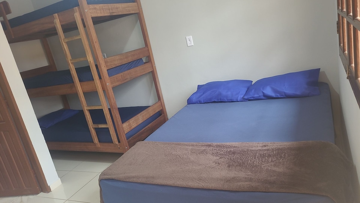 ¡Casa de nueva construcción! ¡Tenemos 1 suite para un máximo de 4 personas (dormitorio y baño privado) cama tamaño queen con colchón de tecnología americana, ventanas y puertas con mosquiteros, minibar 122L, aire acondicionado, piscina y cocina al aire libre compartida, todo equipado! ¡Tenemos 4 suites en total frente a la piscina y las entradas independientes! ¡Totalmente seguro, en la calle de SAI! ¡Estamos en medio del condominio en 6th Street, que facilita el acceso a pie a la playa y al comercio de Itamambuca!