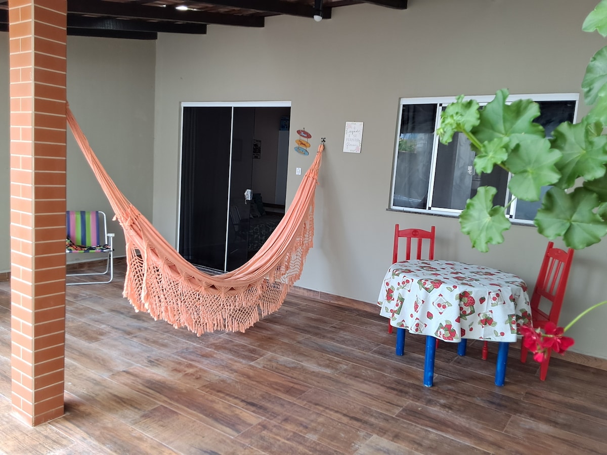 Casa Rústica es una casa de madera, pequeña, muy acogedora, está en un barrio muy tranquilo, la calle de la casa es de arena tan rústica también, la playa cerca de la casa también es rústica, ubicada a 5 km del centro de Itapoa hacia el puerto, lo que la convierte en una gran casa para descansar, el mar que está a 400 metros de distancia no tiene paseo marítimo, es una playa con menos gente, generalmente por la mañana y a última hora de la tarde, tenemos un banco de arena en la orilla del mar, pero también sufrimos del anticipo del mar.
