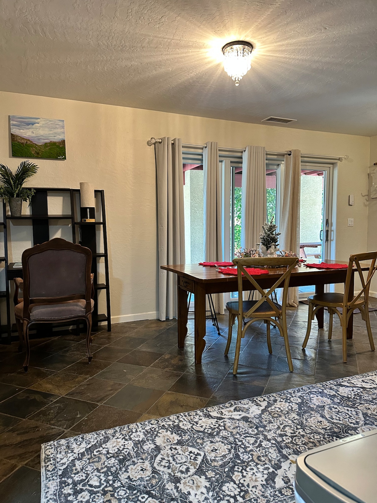 Hermosa terraza con vistas al arroyo. La casa tiene 960 pies cuadrados, 3 dormitorios y 2 baños. Con una ubicación céntrica entre Prescott y Prescott Valley, a 11 minutos del centro histórico de Prescott y a 7 minutos de Prescott Valley. Hermosos asientos al aire libre privados, parrilla de propano. El interior está recién reformado. Incluye wifi rápido, 2 televisores inteligentes, cocina completa, 2 baños completos y vestidor. A pocos minutos de Granite Dell, Lynx Lake y Watson Lake. Café y té gratuitos. Se admiten mascotas domesticadas.