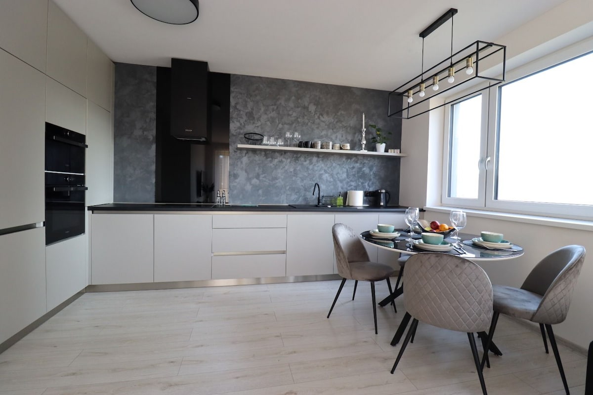 Disfruta de una experiencia de lujo en este céntrico alojamiento recién reformado y a solo 50 metros de la calle principal. El apartamento está completamente amueblado, incluso para una estancia más larga, con la opción de trabajar de forma remota con un escritorio de oficina. Hay varios restaurantes y bares en la puerta y a 3 minutos a pie. Disfruta de esta experiencia única en este moderno y elegante apartamento, con hermosos paisajes naturales alrededor de la ciudad. Los parques nacionales del Paraíso Eslovaco y de los Altos Tatras están a 30 minutos en coche.